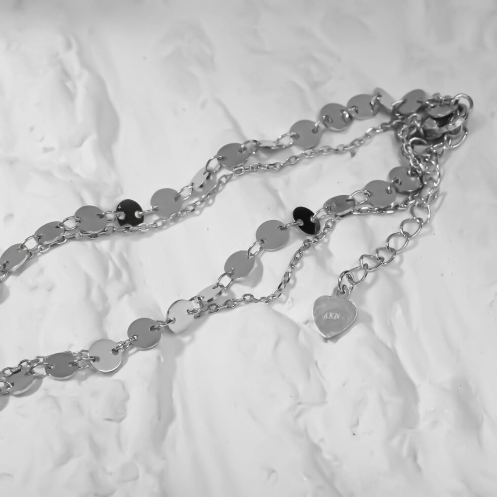 Double layer Silver coin and Cable Chain Silver Anklet